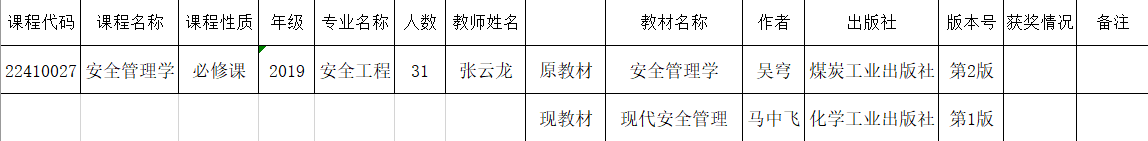 2022-2023-1学期《安全管理学》使用教材变更如下,特此公示。