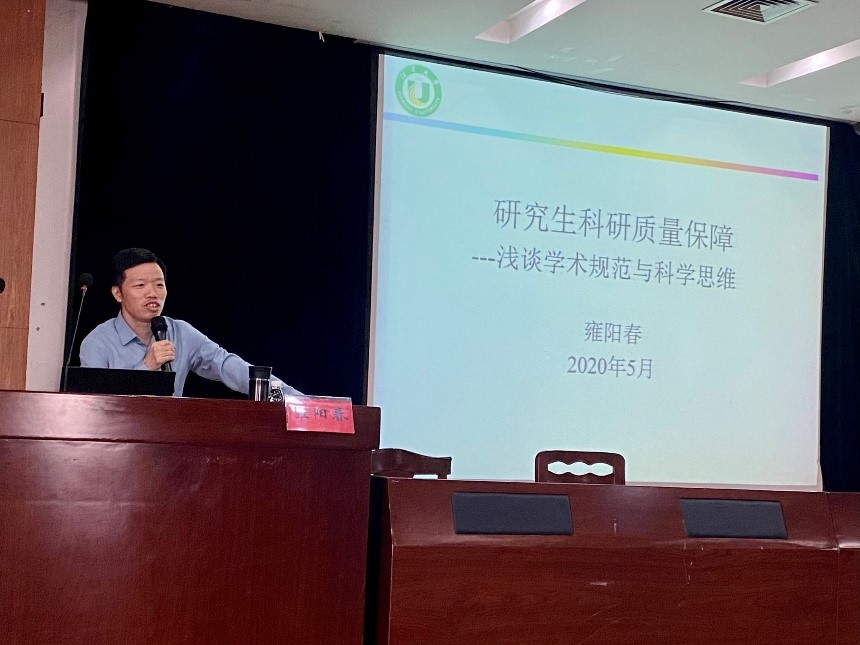 生物质能源研究院院长、环境生物电催化研究所所长雍阳春教授为同学做了主题为《研究生科学质量保障—浅谈学术规范与学术思维》的报告,活动共150余名研究生参加。