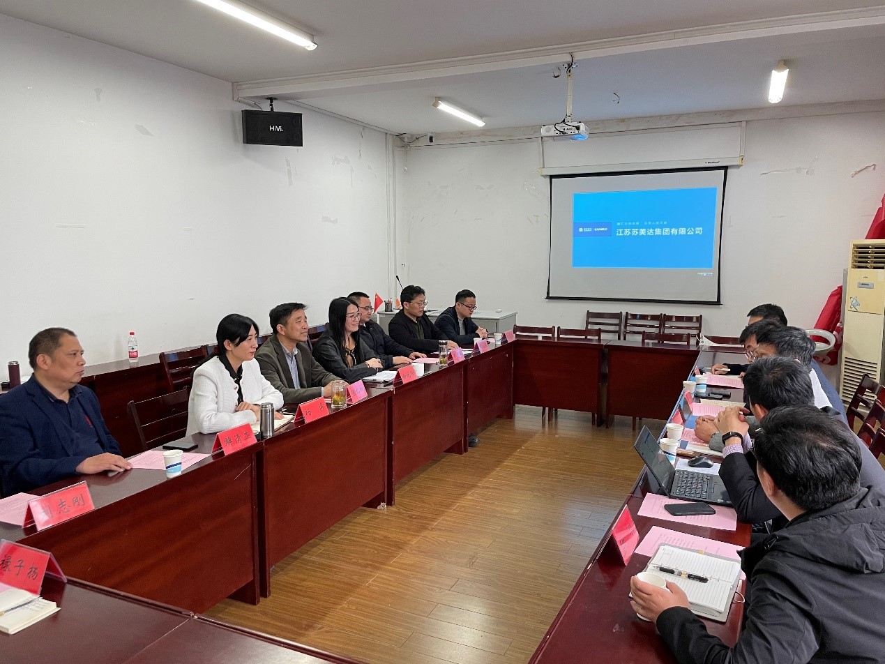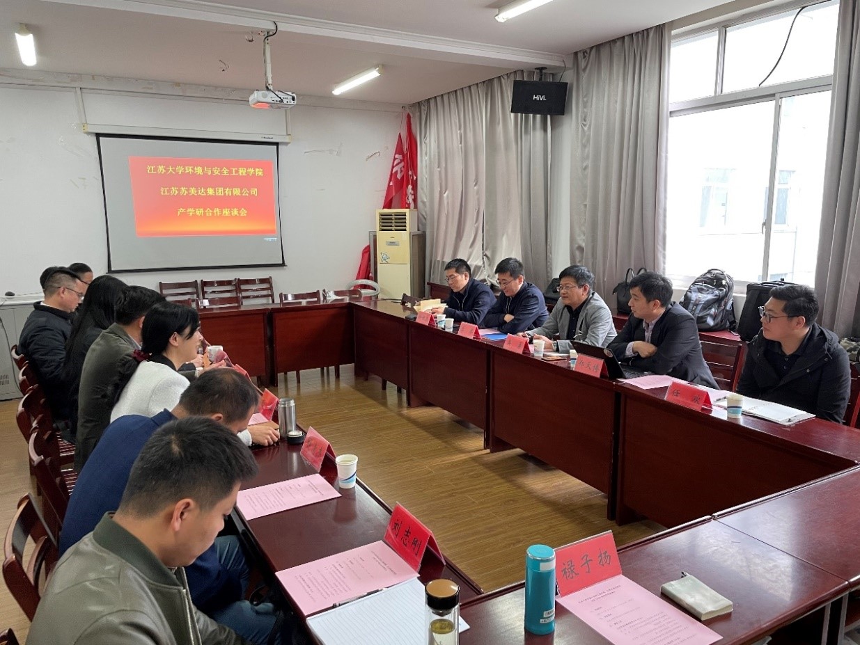参会代表并致欢迎辞,杨博副书记介绍了学院专业及学生培养情况,徐婉珍副院长介绍了近几年学院的科研情况、科研团队及科研方向、学院产学研合作情况及典型案例。苏美达成套公司吴勇总监介绍了苏美达集团、苏美达成套公司整体情况及公司主要业务方向、以及土壤治理业务方面的典型案例;苏美达成套公司李举总经理详细介绍了水处理相关业务及典型工程案例。双方就进一步合作开展了初步意向商定。会后,苏美达代表参观了学院相关实验室。