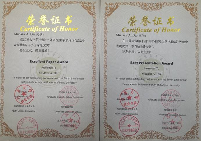Mudasir 获得最佳报告奖和优秀论文奖