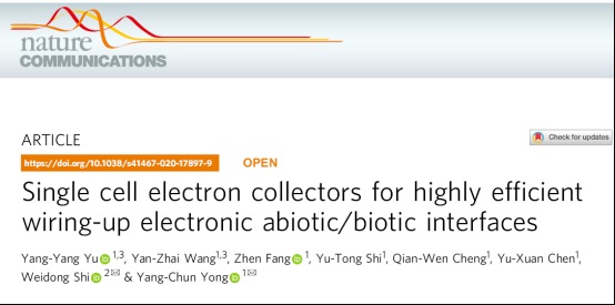 生物质能源研究院雍阳春教授课题组与化学化工学院施伟东教授课题组合作,在《自然-通讯》杂志(Nature Communications)在线发表了题为“Single cell electron collector for highly efficient wiring-up electronic abiotic/biotic interface”的研究论文。该工作完全由黄瓜视频