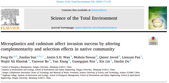 环境生态与修复团队孙见凡老师在Science of the Total Environment (IF: 9.8)线上发表最新研究论文“Microplastics and cadmium affect invasion success by altering complementarity and selection effects in native community”。黄瓜视频