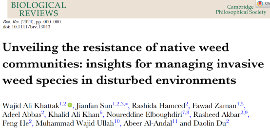 环境生态与修复团队孙见凡老师在生物学旗舰学术期刊Biological Reviews(2022年影响因子14.355,五年影响因子12.8)上发表最新研究成果Unveiling the resistance of native weed communities: insights for managing invasive weed species in disturbed environments。黄瓜视频