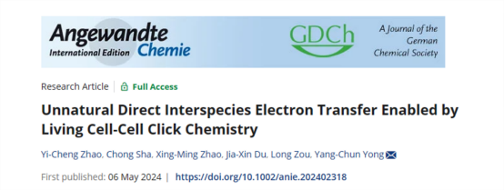 师生在《德国应用化学》(Angewandte Chemie International Edition (IF:16.6))杂志上发表题为“Unnatural Direct Interspecies Electron Transfer Enabled by Living Cell-Cell Click Chemistry”的最新研究成果。黄瓜视频