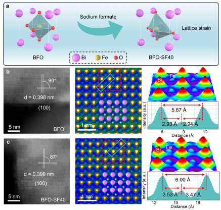 利用太阳能将二氧化碳光转化为有价值的化学产品是解决能源和环境问题一种有前景的策略。然而,强吸附的CO2会显著增加反应活化能来阻碍后续的反应。在此,本研究提出了一种具有晶格应变的BiFeO3材料,该材料协同调节金属位点和*CO2以及*COOH中间体之间的d/p-2π*轨道杂化,以实现强吸附CO2快速转化为关键的*COOH中间产物,加速整体CO2还原动力学。准原位X射线光电子能谱和原位傅里叶变换红外光谱结合理论计算表明,优化的Fe位点增强了CO2的吸附和活化作用,在光照条件下,内部电子迅速转移到反应位点并注入表面*CO2和*COOH,促进了*COOH的快速活化和稳定。