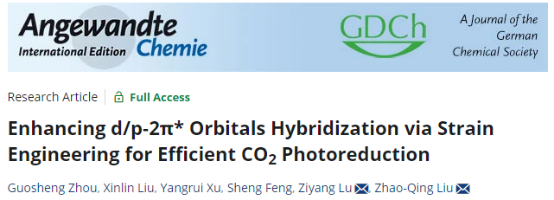 逯子扬教授等在《德国应用化学》(Angewandte Chemie-International Edition)上发表最新研究论文“Enhancing d/p-2π* Orbitals Hybridization via Strain Engineering for Efficient Photoreduction CO2”,并入选Inside Cover。黄瓜视频