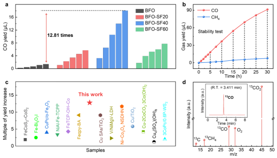 综上所述,本研究通过一种简单的晶格应力工程策略制备了BFO-SF40,实现了对CO2的稳健吸附和*CO2到*COOH的快速转化。优化的Fe位点增强了与CO2的轨道杂化以及*COOH与Bi位点的联合杂化,构建了电子从位点到表面吸附分子的快速转移通道,促使了*CO2的快速转化和*COOH的稳定。BFO-SF40在水蒸气环境中光还原CO2-CO的性能是BFO的12.81倍。这项工作为强吸附CO2的快速光还原过程提供了新的视角。