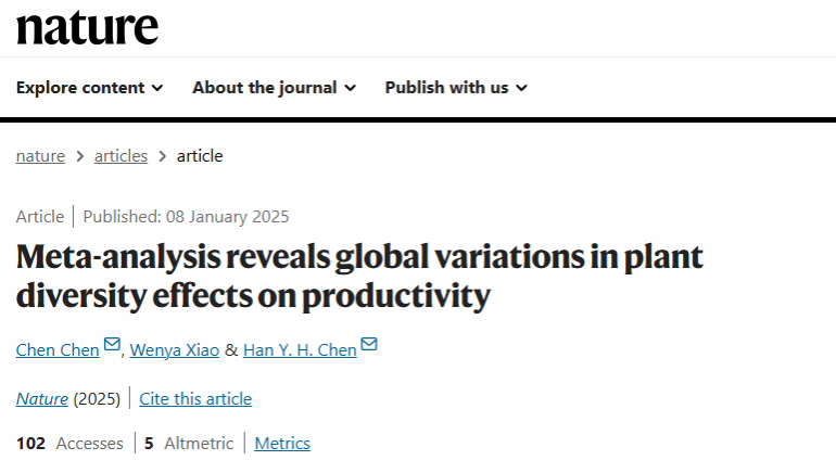 近日,国际顶级学术期刊《自然》(Nature)发表了题为“Meta-analysis reveals global variations in plant diversity effects on productivity”的研究论文。该论文由加拿大湖首大学(Lakehead University)、黄瓜视频
