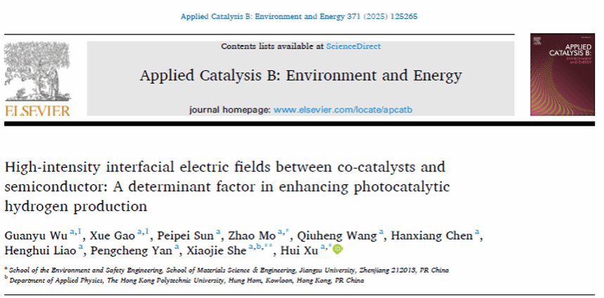 最新研究论文“High-intensity interfacial electric fields between co-catalysts and semiconductor: A determinant factor in enhancing photocatalytic hydrogen production”在《Applied Catalysis B: Environment and Energy》(SCI一区,IF = 22.1)上在线发表。黄瓜视频