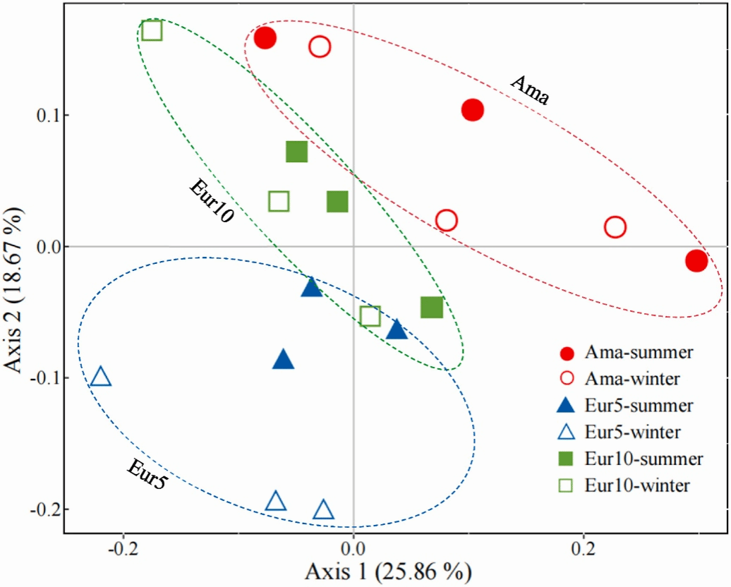 马占相思林在亚洲国家广泛分布,但近年来因根腐病和溃疡病的危害,正逐渐被桉树林取代。本研究对中国南方马占相思次生林以及由该林皆伐后改种的5年龄和10年龄的桉树林土壤中的原核生物进行了研究。通过对16S rRNA基因进行测序、对土壤理化因子的测量和分析。结果发现森林皆伐改造显著改变了土壤原核生物群落结构,而改造林经过多年恢复后,原核生物群落也经历了渐进的恢复。研究还发现,土壤pH值、含水率和总磷含量是影响土壤原核生物群落结构的关键理化因子。该研究成果得到了国家自然科学基金项目(32171760)的资助。全文链接://doi.org/10.1016/j.jenvman.2025.125742。