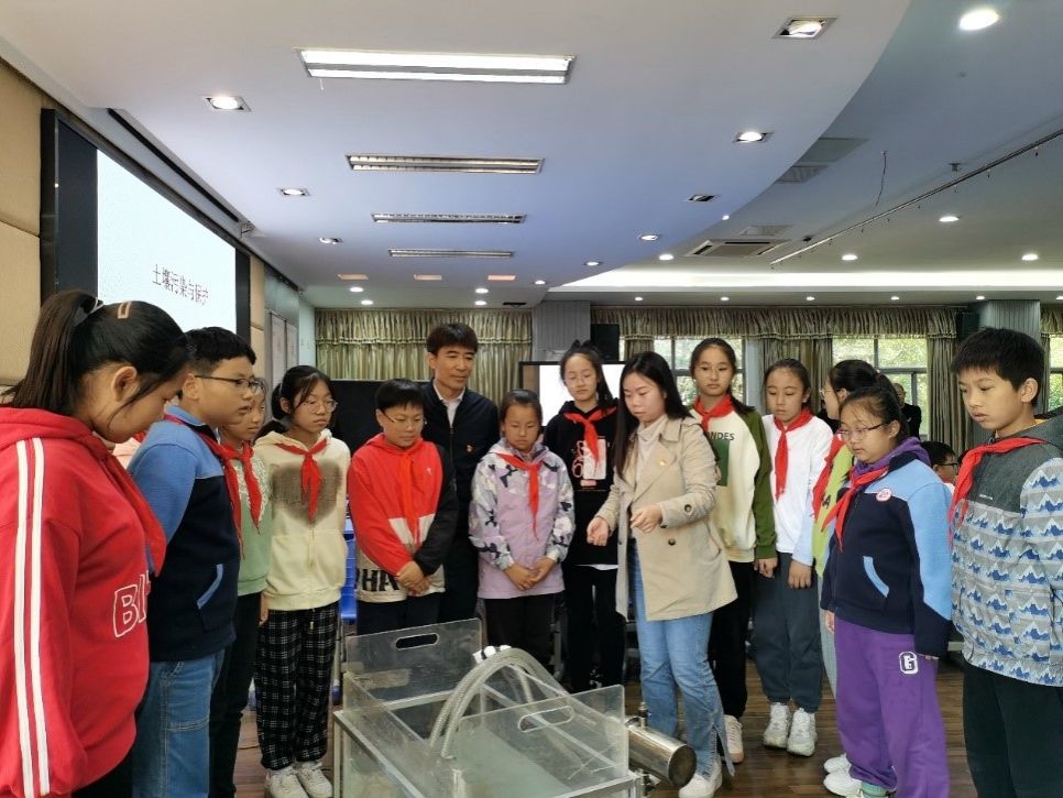 首先,青年教师吴桂竹现场展示微纳米气泡快速发生装置,并结合水污染治理相关知识给学生们耐心讲解设备原理,演示水质得到明显改善、黑臭水得到治理的场景。