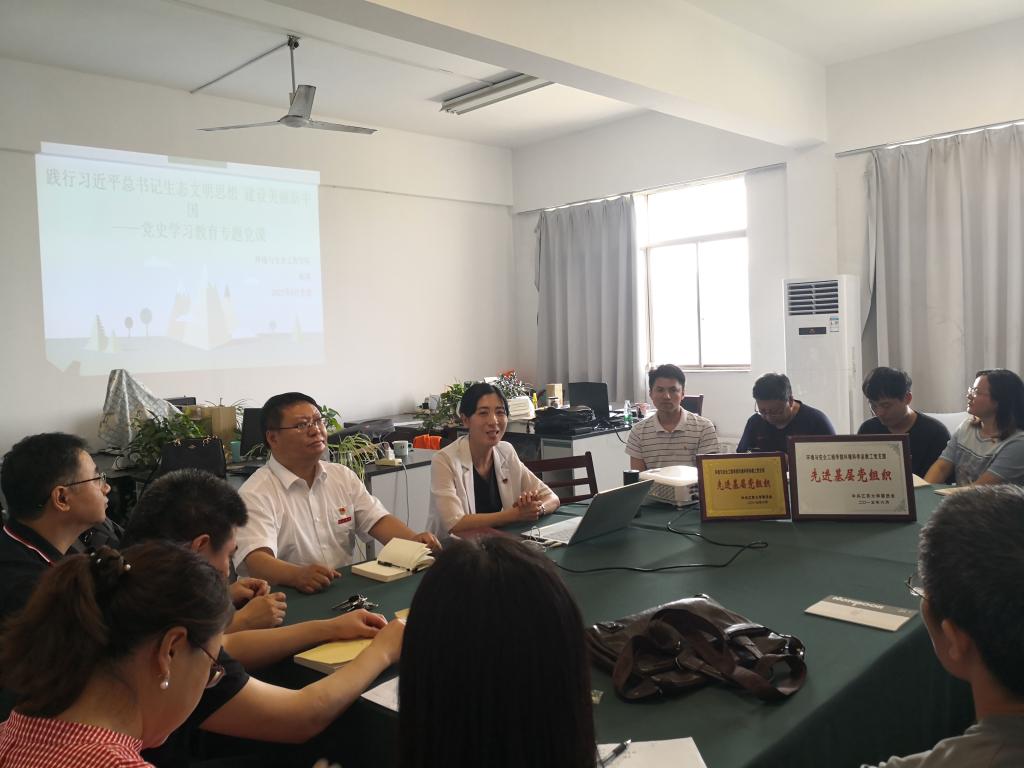 党委书记副书记杨博在主A514以“践行习近平生态文明思想、建设美丽新中国”为题向环境科学系教工党支部全体教工党员讲授了一堂主题鲜明、精彩生动的党史学习教育专题党课。会议由环境科学系教工党支部书记王从彦主持。