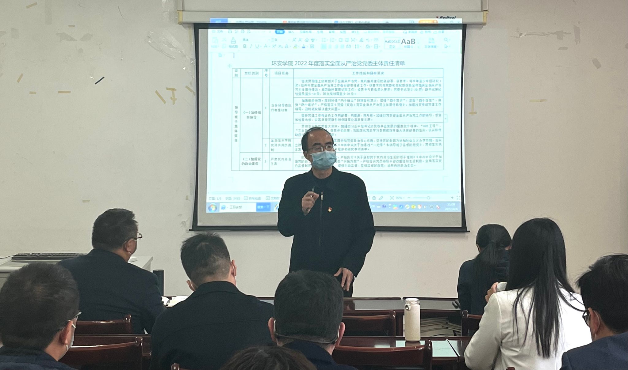 最后,黄勇强强调,要提高政治站位,深刻认识全面从严治党的重要意义,做实做细意识形态、疫情防控、“095工程”、“三全育人”、师德师风建设、安全生产、廉政文化建设等各项工作,不断推动学院全面从严治党工作向纵深发展,营造风清气正的政治生态和良好的干事创业环境,有效促进学院事业发展,在创“双一流”大学的征程中担当作为、有所作为。
