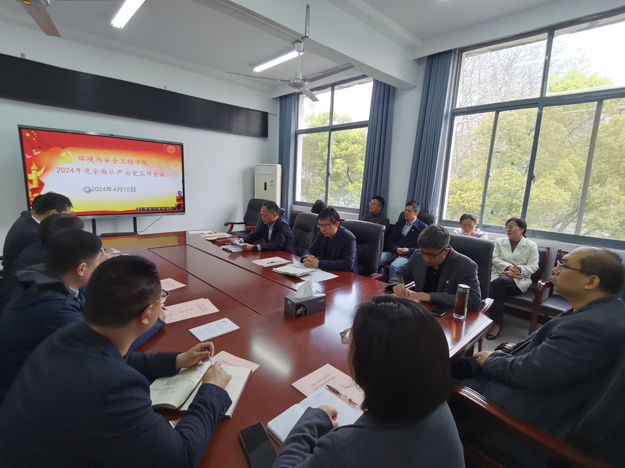在环安楼310会议室召开2024年度全面从严治党工作会议。学院领导班子成员、党委委员、党支部书记和纪检委员、学院二级单位主任、科级干部参加会议。会议由党委书记夏建如同志主持。
