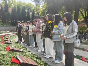 随后,师生党员来到烈士墓碑前为烈士们敬献鲜花,用质朴的行动表达对革命先烈崇高的敬意。今天的幸福生活来之不易,莫忘先烈的功勋。