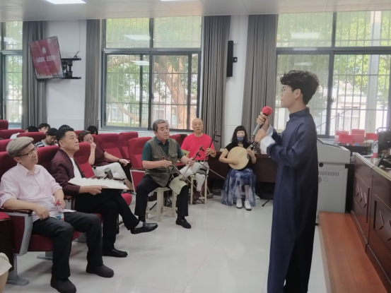 的师生们揭开了京剧的神秘面纱。他从京剧的起源、行当分类、唱腔特点等基础知识讲起,结合历史典故与艺术演变,深入浅出地诠释了京剧作为“国粹”的文化内涵。现场师生通过互动问答,进一步理解了京剧“唱念做打”的艺术精髓,为后续的沉浸式体验奠定了认知基础。