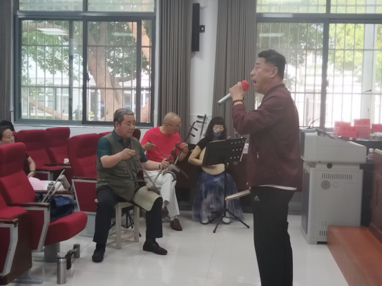 在剧目演绎环节,多位老同志轮番登台,以精湛的技艺诠释了京剧艺术的多元魅力。孙淑华老师演绎的《贵妃醉酒·海岛》婉转悠扬,尽显梅派艺术的风华绝代;周光老师带来的《红灯记·心红胆壮》铿锵有力,重现革命年代的赤子丹心;段宁岩老师演唱的《红娘·小姐呀》细腻传神,展现京剧青衣的柔美风韵。此外,《智取威虎山·朔风吹》《锁麟囊·一霎时》《霸王别姬·劝君王(剑舞)》等经典选段的精彩呈现,更将现场气氛推向高潮。老师们一招一式间尽显功底,一唱一念中传递情感,赢得师生阵阵掌声。
