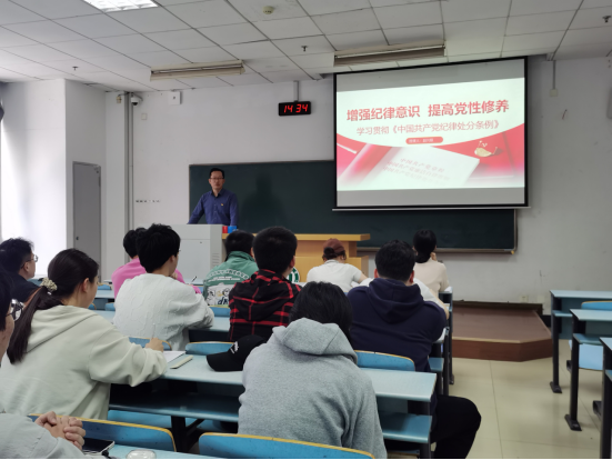 根据党纪学习教育安排,赵兴联的讲课内容是“学习贯彻《中国共产党纪律处分条例》增强纪律意识, 提高党性修养”,他从四个方面授课:第一,学习贯彻《中国共产党纪律处分条例》的重大意义;第二,《中国共产党纪律处分条例》的理论创新;第三,《中国共产党纪律处分条例》的制度创新;第四,正确理解“党纪严于国法”保持共产党员先进性。